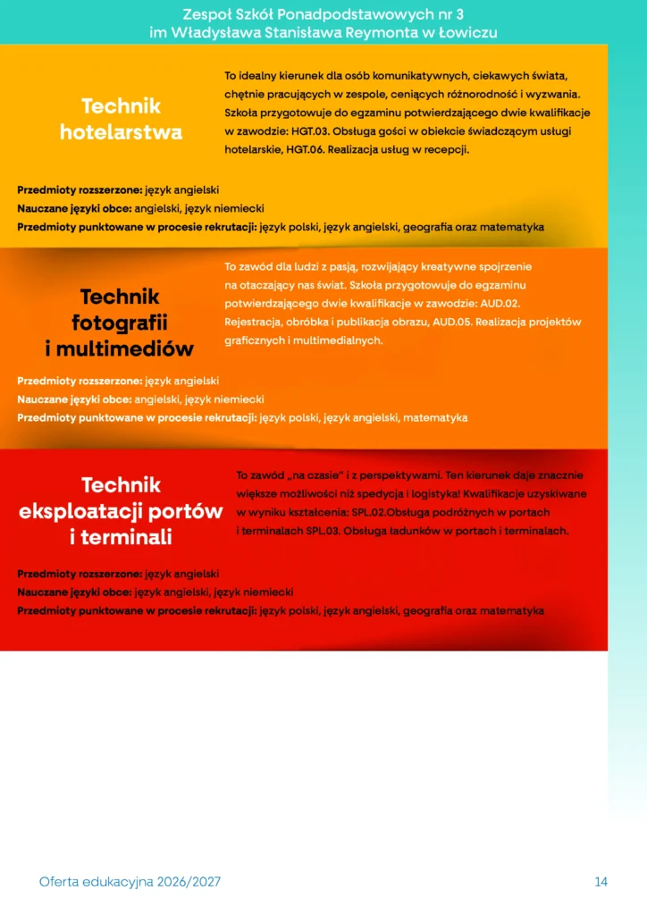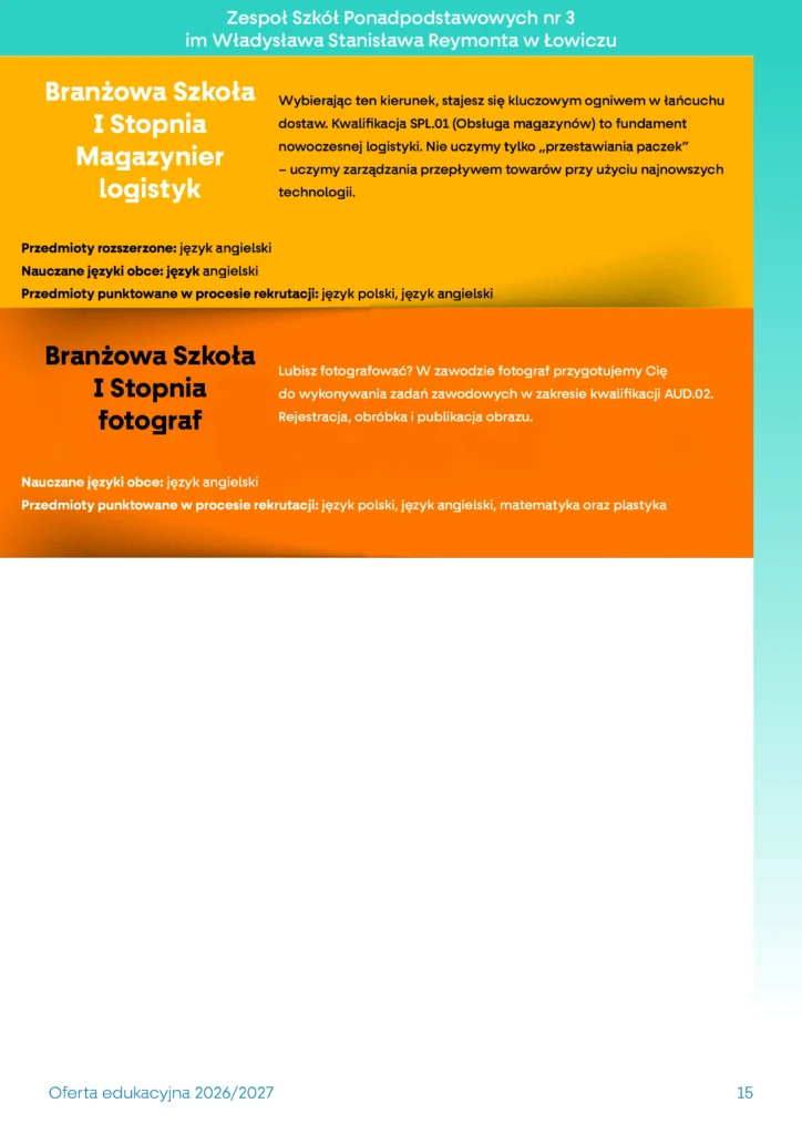 • Oferta szkoły branżowej